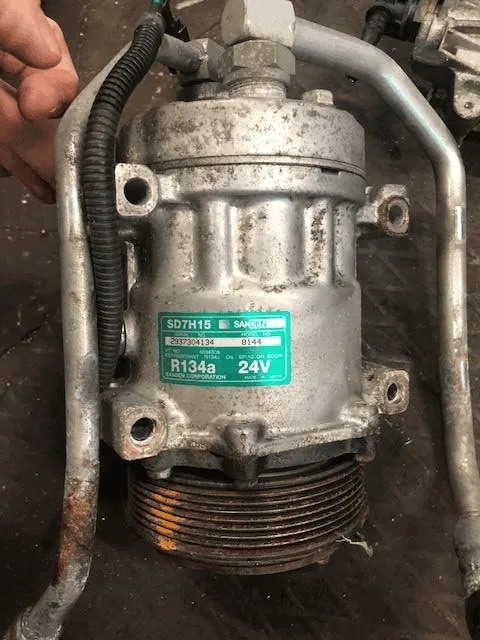 This air conditioning compressor for Iveco vehicles is an essential part for maintaining a comfortable interior climate while driving. The product is compatible with refrigerant gas R134a and operates at a voltage of 24V.
