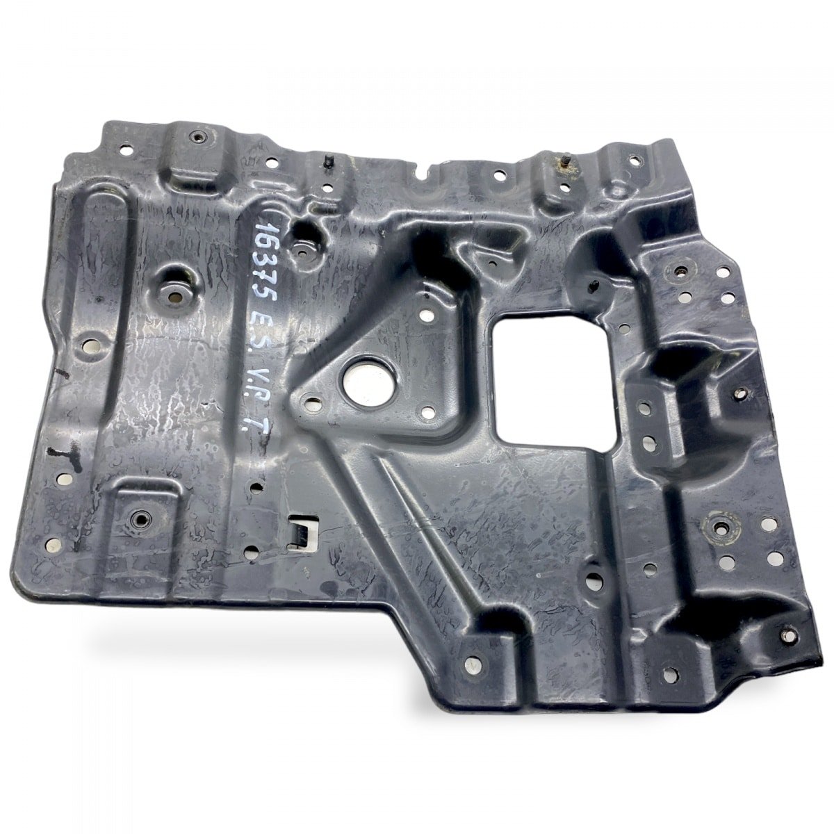 Air dryer support for Scania trucks, compatible with models that have OEM codes 2226725 and 2617363. It is made from durable material, providing a secure and stable mounting for the air dryer. Its design includes multiple holes and cavities for easy and precise installation.