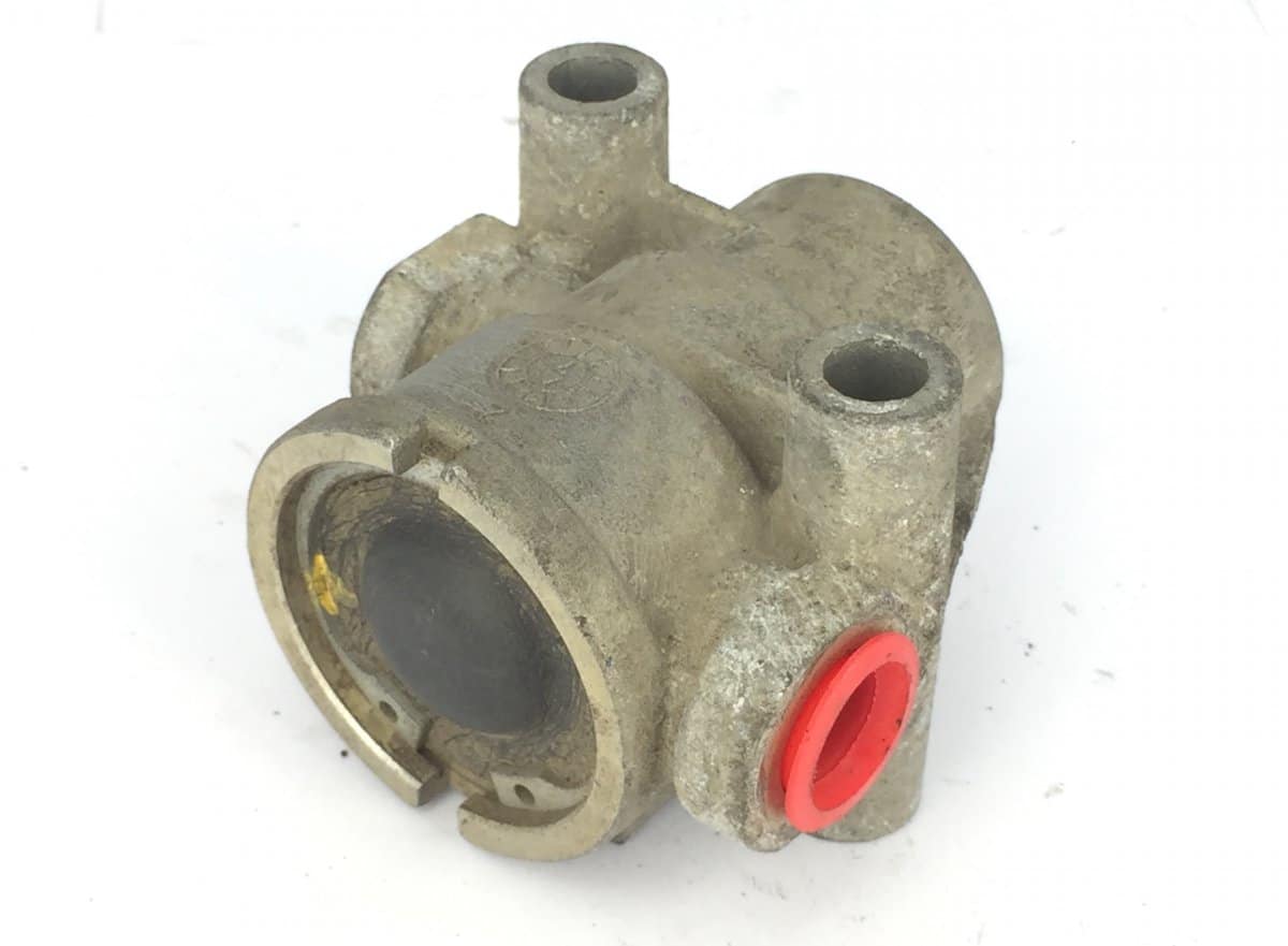 Air Pressure Regulator Scania – Metal part with two connections and a black cap