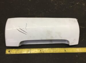 Right cabin air deflector for MAN, reference codes: 81624100092, 8162410-0092, 81624100090, 8162410-0090. The presented product is white and has some scratches and signs of wear. The approximate size can be estimated using the yellow ruler in the picture, which suggests a length of about 60 cm. This deflector is used to improve the aerodynamics of the vehicle and reduce fuel consumption.
