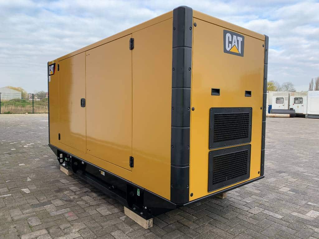 Caterpillar 220 kVA industrial power generator with CAT engine, steel box, tank, and battery
