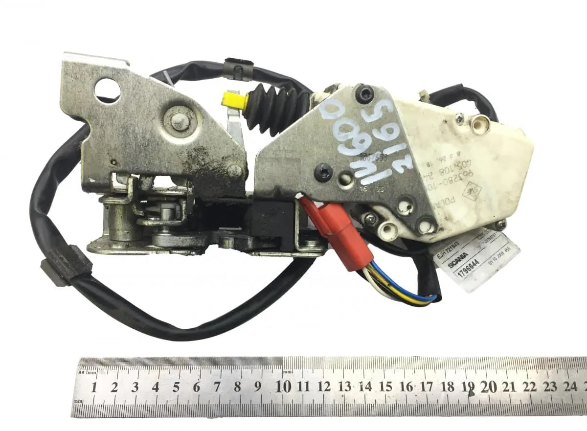 Central locking mechanism for Scania, used for the central locking systems of Scania vehicles. The product is compatible with various models and comes equipped with electrical wires for connection.