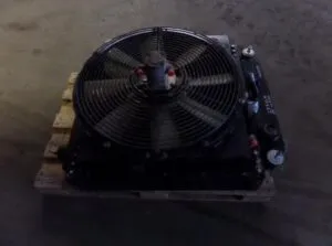 This cooling system is specially designed for Liebherr LR622 machinery models. The equipment includes a robust radiator fan mounted on a solid support to ensure efficient and reliable engine cooling.