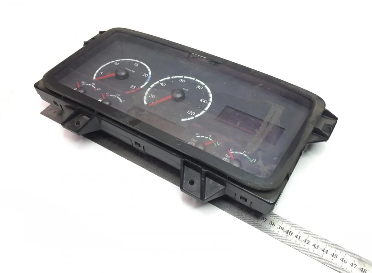 This dashboard is intended for Scania vehicles and is an essential component for monitoring various vehicle functions. It includes indicators for speed, air pressure, and other critical functions. The robust and durable design ensures reliable long-term performance.