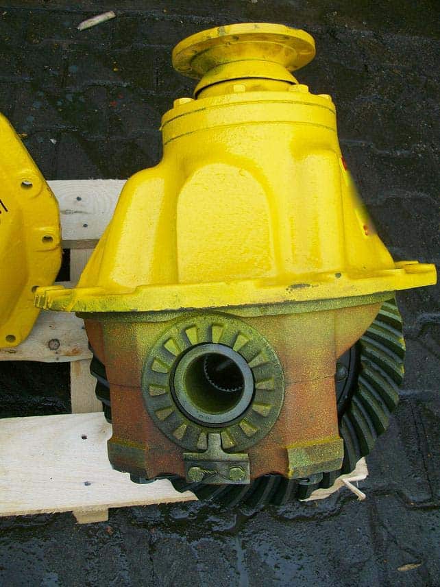 This axle differential is an essential component for Hanomag industrial tractors. The product is built to provide superior performance and durability in demanding working conditions. Its robust, yellow housing ensures protection and optimal functioning of the internal mechanisms.