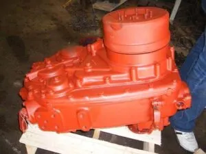 Final transmission for Hanomag machinery, import from Germany. The product is made from high-quality materials, ensuring excellent durability and performance. It is painted in a shade of bright orange, providing both an attractive visual appearance and protection against corrosion. The transmission is designed to be compatible with Hanomag equipment, being easy to install and maintain.