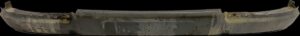 Description: Front bumper for Scania trucks, made from durable material to ensure optimal protection. The product shows signs of wear and rust, indicating that it was previously used. It is recommended to check compatibility with the specific truck model before purchase.