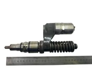 This fuel injector is intended for Scania vehicles, model 1730888. The product includes a ruler for measurement, thus facilitating the checking of dimensions and the fitting of components.