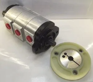 Hydraulic pump for Bobcat X220, X230 with mounting adapter. This hydraulic pump is ideal for Bobcat machines models X220 and X230, ensuring optimal performance due to its robust and durable construction.