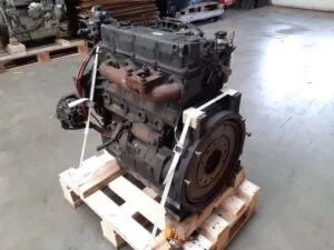 The engine is equipped with various essential components, including an alternator and cooling system. The exterior shows signs of wear, indicating previous use, but is in good working condition.