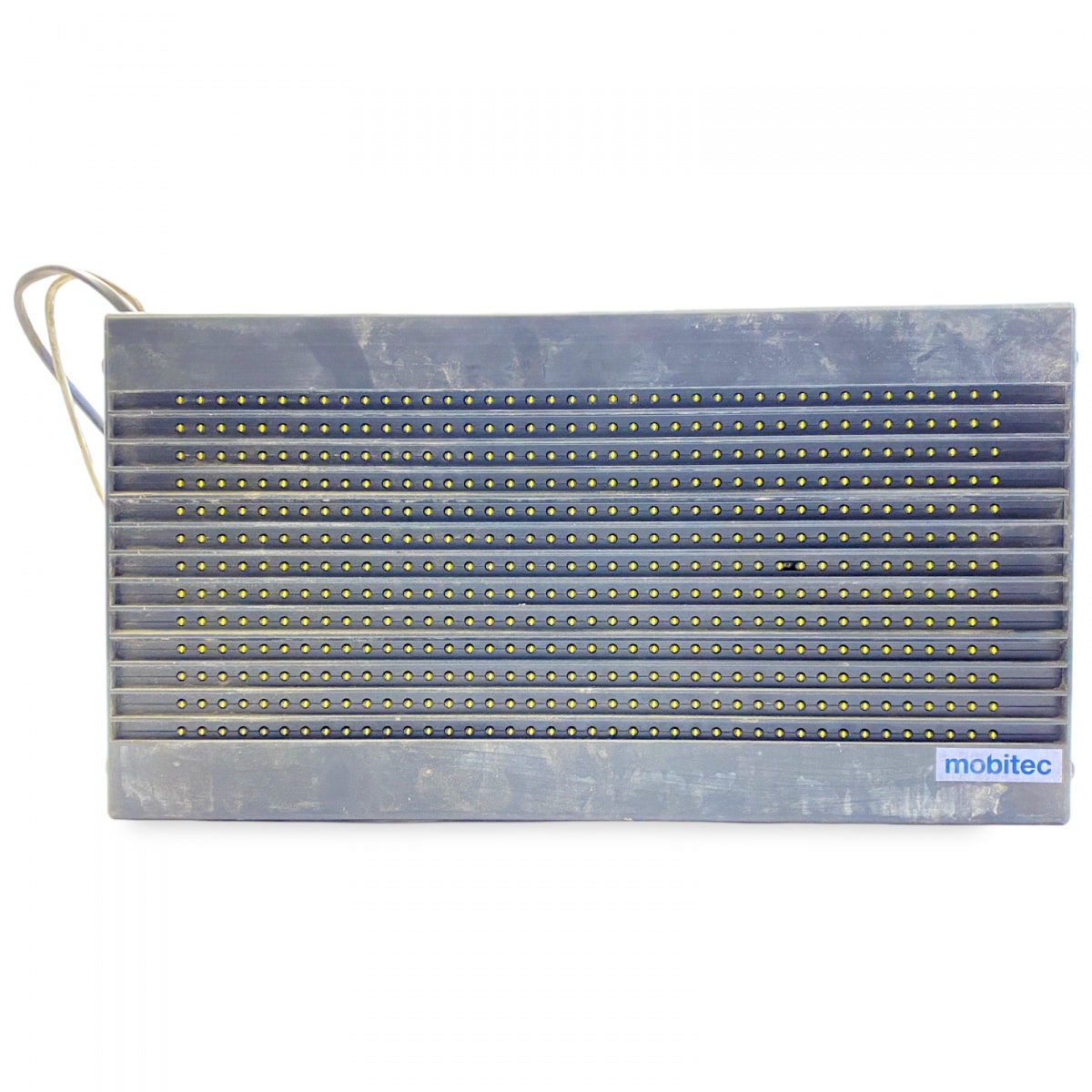 The product is manufactured by Mobitec, a renowned producer of quality display equipment for public transport. The indicator is sturdy and durable, making it ideal for use in various environmental conditions.