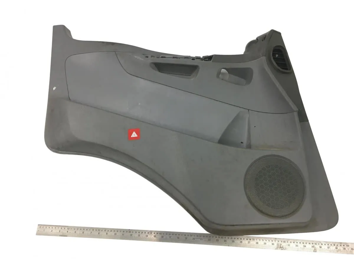 Left door panel for Mercedes Atego 2, model 2013. The product is made of high-quality plastic, providing durability and wear resistance. The panel includes an integrated speaker for the vehicle’s audio system. It also features spaces for buttons and handles, designed to fit perfectly on the left door of the specified model. The exact dimensions of the panel are indicated in the image, with an approximate length of 100 cm.