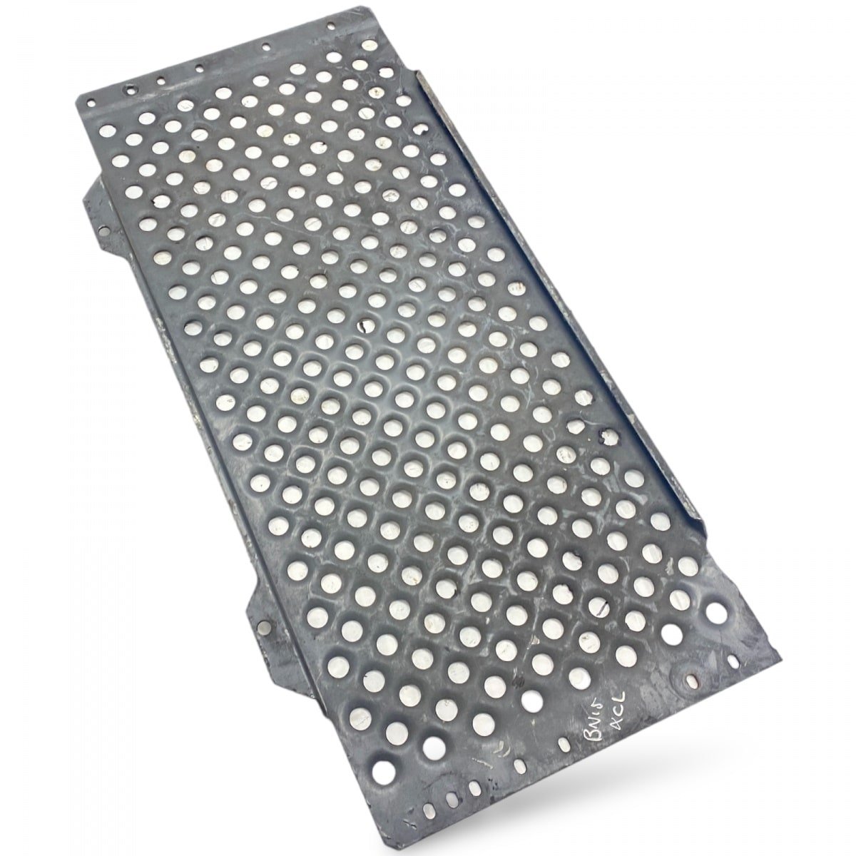 This product is a cover plate meant for DAF trucks. It is made of durable metal and features multiple circular perforations to ensure a lightweight construction and adequate ventilation.