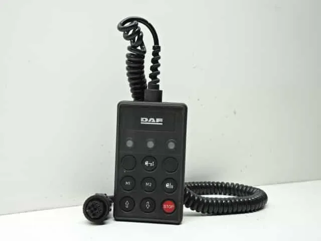 The remote control for pneumatic suspension DAF 4460561290 is a compact and efficient device, designed for controlling the pneumatic suspension system in DAF vehicles. It is equipped with a spiral cable that allows flexibility in use.
