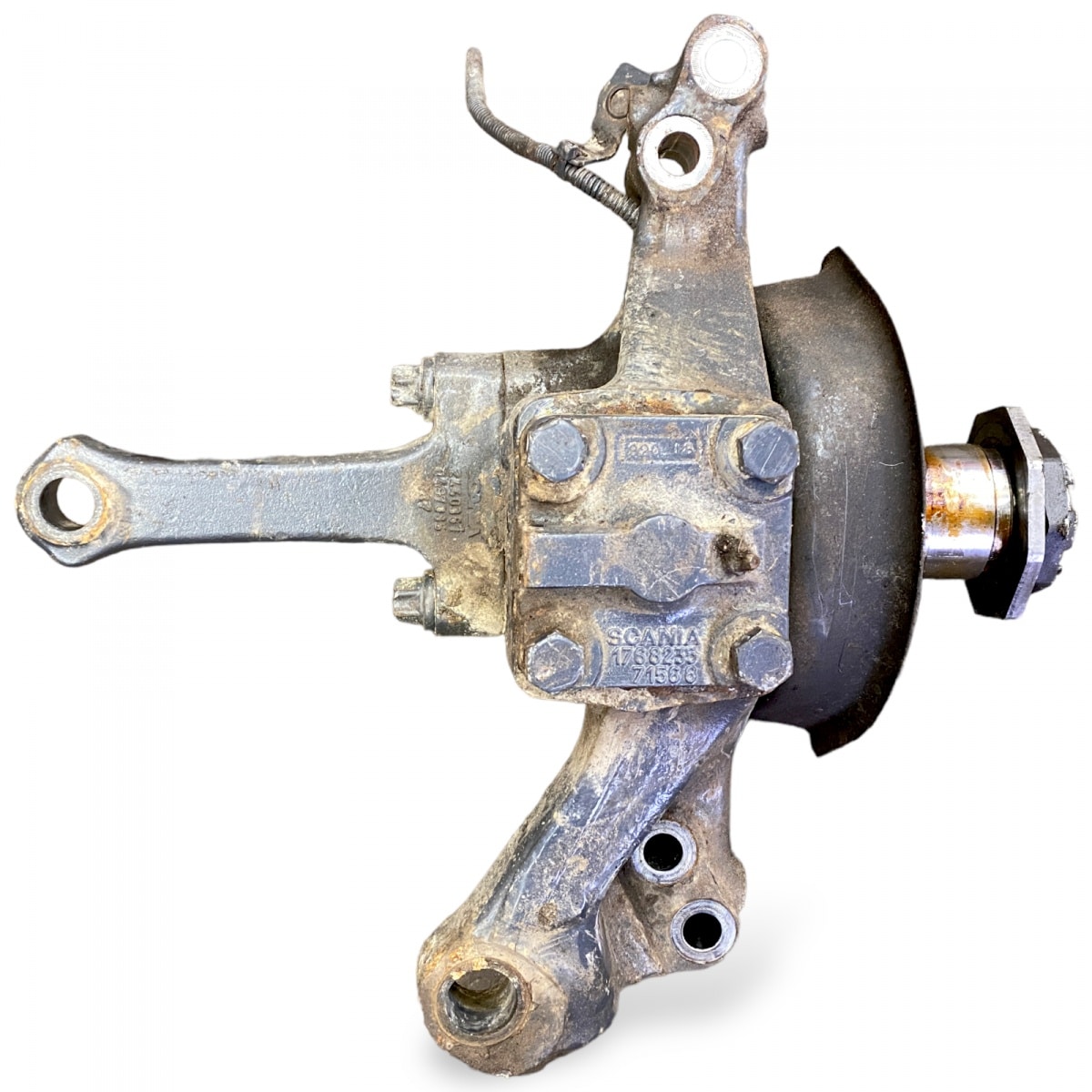 Steering knuckle for left front axle, compatible with Scania vehicles. Product code: 2443889-15. This essential component for the steering system offers durability and superior performance, designed to withstand intense usage conditions. Ideal for replacing worn or defective parts, ensuring optimal and safe operation of the vehicle.