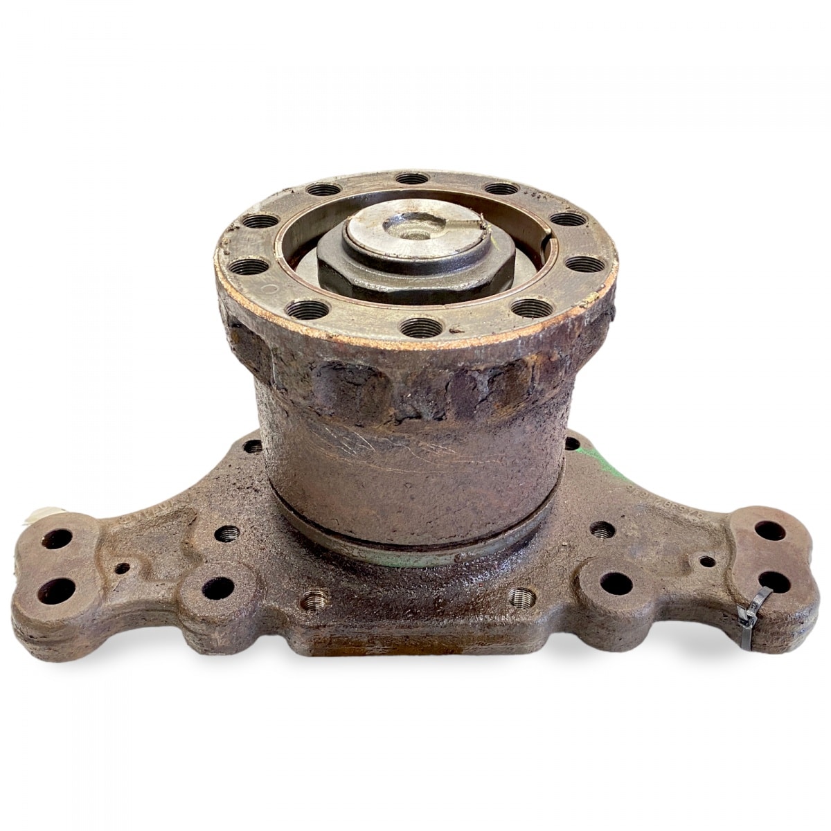 Description: Steering knuckle for the left secondary axle, used in Mercedes trucks. This essential part for the steering system ensures the connection and proper functioning of the front wheels.