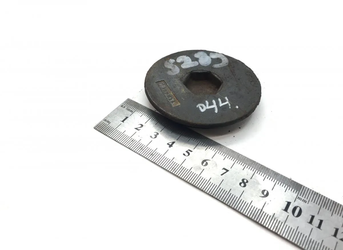 Steering axle pivot cap for Scania 1386406-11. This pivot cap is essential for maintaining the stability and precision of the vehicle’s direction. Made from a durable material, it ensures longevity and optimal performance. The approximate dimensions of the product are displayed in the image, where it can be seen that the diameter is measured in millimeters, providing a precise fit for the vehicle’s specifications.
