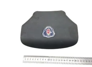 Description: This cover for the steering wheel airbag is compatible with Scania vehicles. Made from high-quality material, it offers durability and safety. The approximate dimensions are indicated by the ruler in the image.