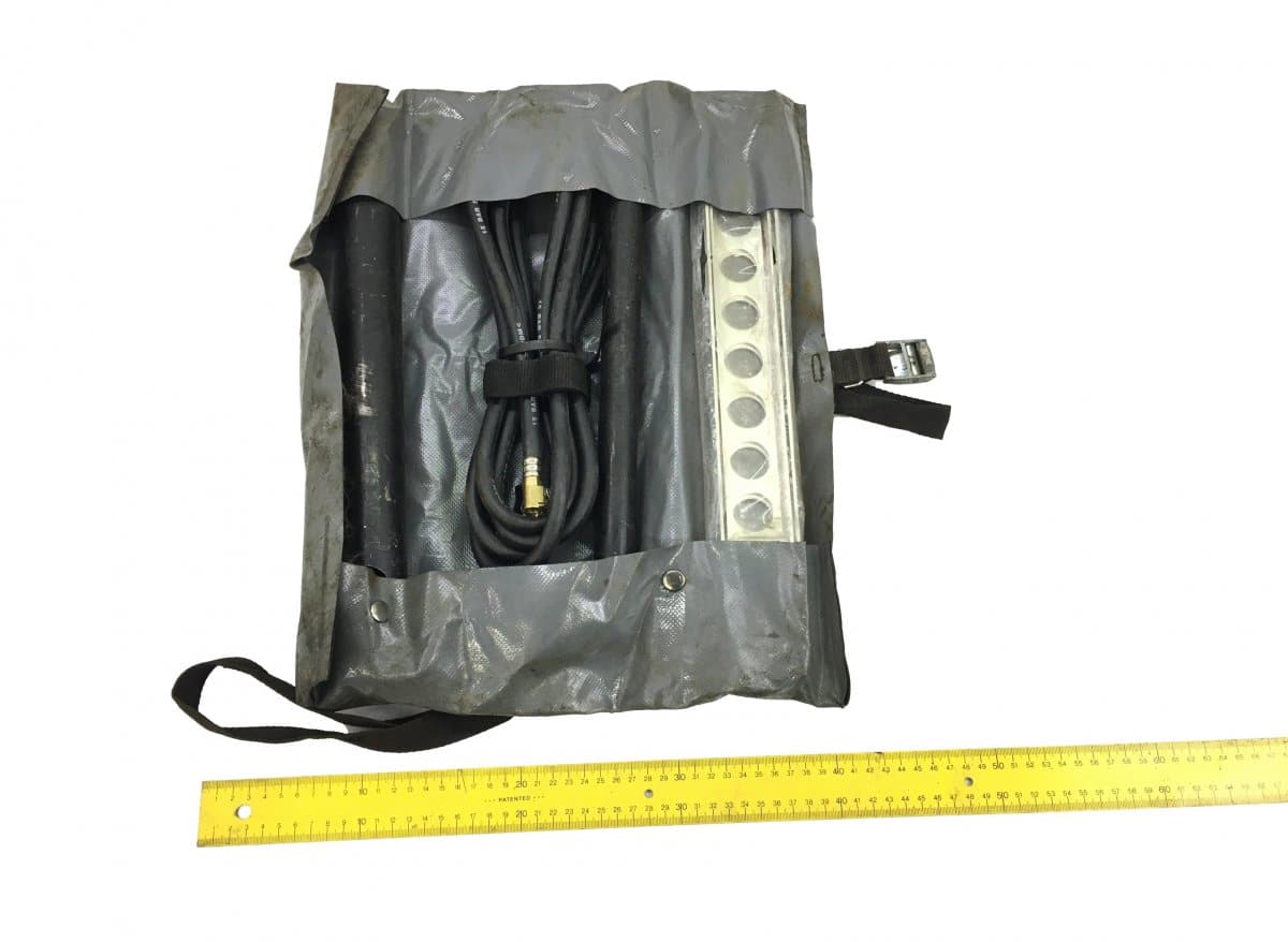 Approximate dimensions of the case: 40 cm x 30 cm (width x height). The total length of the cables is approximately 150 cm.