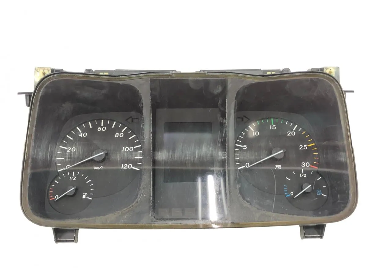 This dashboard clock for the Mercedes Antos Actros MP4 (2013) is an essential tool for monitoring vehicle performance. It includes a speedometer, an RPM counter, and a fuel level indicator. Its design is robust and reliable, specially designed to withstand intensive use conditions. The displays are clear and easy to read, ensuring accurate monitoring of speed, engine RPM, and fuel level, thus contributing to safety and efficiency in operating the truck.